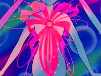 Pojawia się różowe światło, wstążki wydobywające się z broszki tworzą główną część stroju Sailor Senshi (body, kokarda oraz kołnierz).