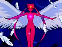 Czarodziejka rozpierała skrzydła ramionami i od razu, po raz pierwszy pojawiała się Wieczna Czarodziejka Księżyca.